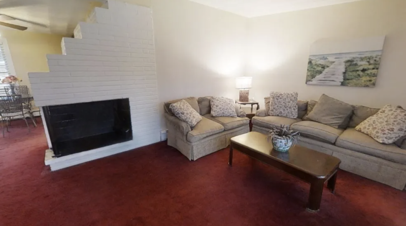 “The eat-in kitchen features stylish kitchen cabinets, wall oven, electric cooktop, & built-in microwave and is adjacent to an additional dining area. A cozy den provides closet storage and space for a home office or playroom with access to the back yard or garage,” wrote the Realtor.