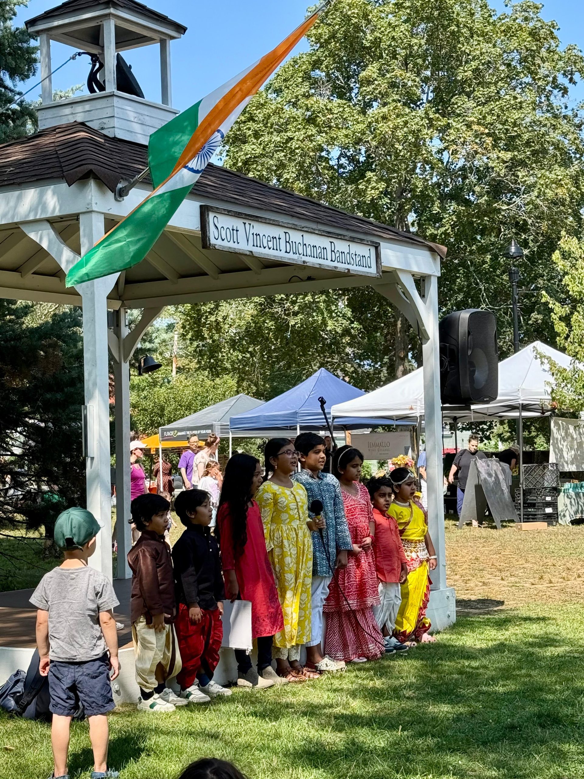 Ashland is United (AiU) was thrilled to be approached by Steve Mitchell, Board of Ashland Farmers Market to celebrate India’s Independence Day. AiU’s mission has been to build and strengthen bridges and educate and expose new ideas to people. We organize events in Town that represent their mission for creating inclusivity and acceptance. One of our primary projects is titled Flag Project that celebrates flags and varied nations represented in Ashland. In collaborating with the Ashland High School, we realized there were people from twenty-eight countries that made Ashland their home. The Flag Project provides an opportunity to acknowledge the nations through talks, moderated conversations, film screenings, flag raising. We have celebrated Ukraine, Sri Lanka and Haiti in the past. And now we get an opportunity to celebrate India!