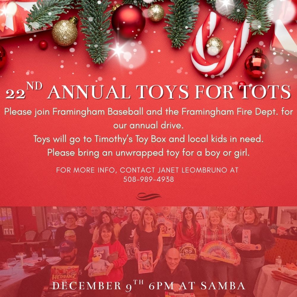 The holiday season is a time for giving, and our community is coming together once again to make a difference. Framingham Baseball and the Framingham Fire Department invite you to join us for our 22nd annual toy drive, a tradition that brings joy to local children and families in need.