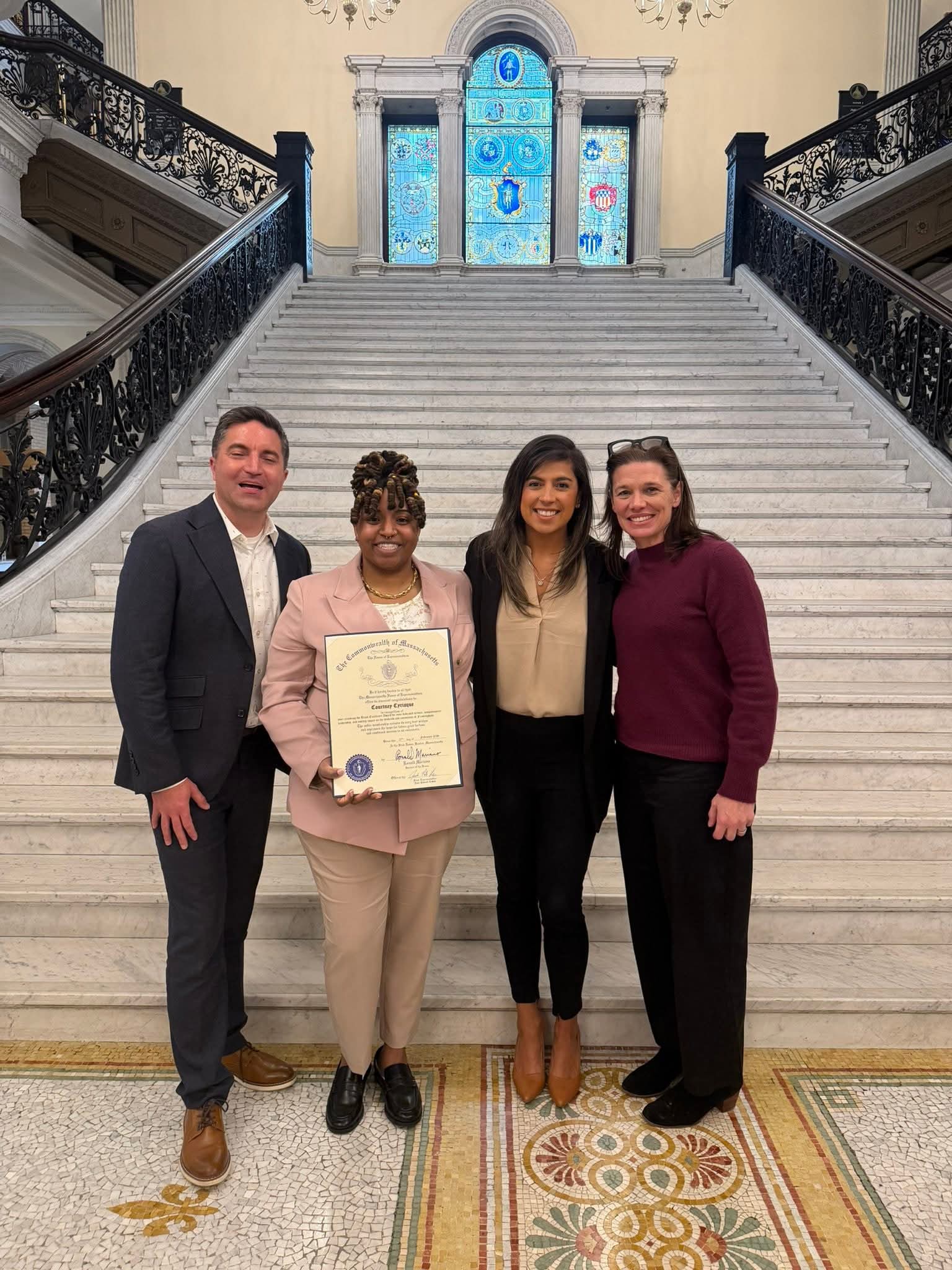 (Framingham) Courtney Cyriaque, a Framingham resident and campus aide at King Elementary School, was honored at the 2026 Black Excellence on the Hill Awards after her nomination by Representative Jack Patrick Lewis. A former Framingham public schools graduate, Coutnrey was recognized for her steadfast dedication to the city, its schools, its students, and the values that make Framingham schools strong.