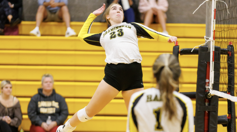 FRAMINGHAM – The Framingham High girls volleyball team hosted the Raiders of Wellesley High this afternoon, October 18. The Raiders won 3-0. Photos by Mike Spring